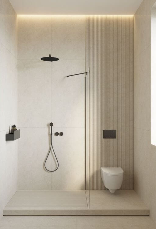 - Install a glass screen with a thin profile instead of hanging a shower curtain.