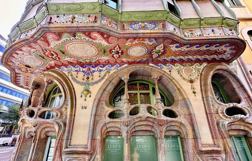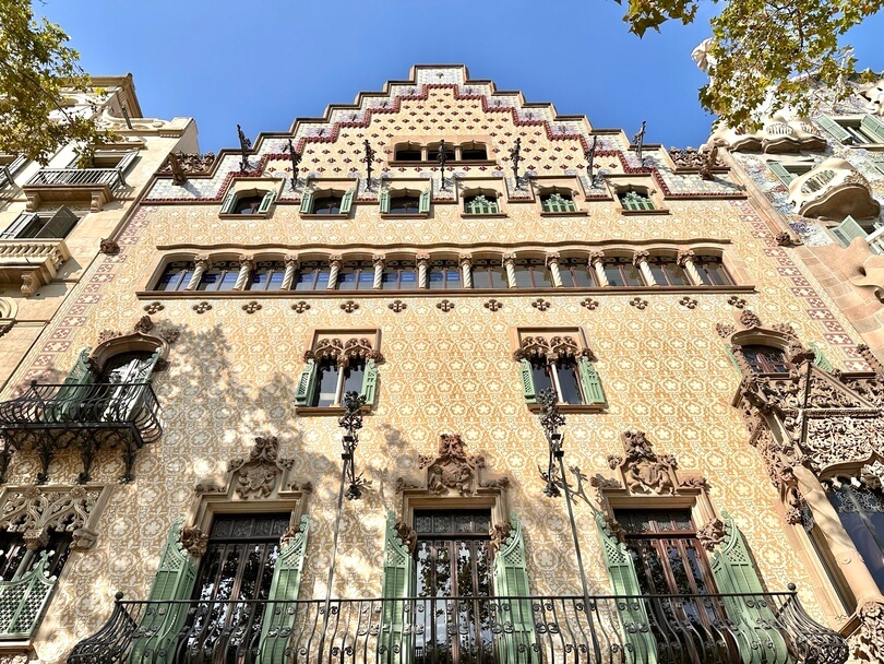 This next building is the heart of what Catalan modernisme represents. Casa Comalat is one of the best examples of Salvador Valeri i Pupurull’s extraordinary talent. The building was constructed between 1909 and 1911, and it stands out for its richly decorated façade with colourful ceramics and sculptures. These details capture the true essence of Barcelona’s modernist architecture.