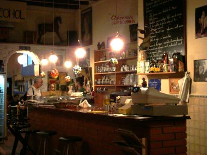 La Nena is one of those places you fall entirely in love with the instant you see it. It looks pretty cute from the outside with its pendulous coloured lights and tiny tables and then inside you find board games, home-made cakes, and the kind of ramshackle ambience that you couldn’t buy with a hundred interior designers. An old clock dongs the hour (almost accurately) sleepy old-time blues tickles your skin, and customers’ dogs wander around untethered or snooze at their masters’ feet alert for falling crumbs.