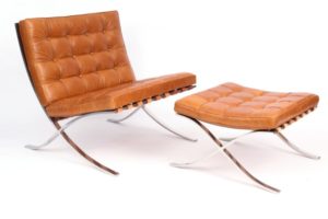The Barcelona Chair and Ottoman were designed by Ludwig Mies van de Rohe and Lilly Reich. They were created for the International Exposition of 1929, which took place in Barcelona – more specifically, for the German pavilion in that exposition. They were meant for the Spanish King and Queen to sit on, while observing the opening ceremonies.
