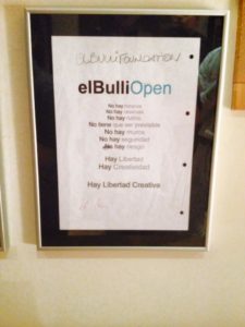 The Taller is part workshop, part museum, and part office. Once inside the front door, the hallway is covered in framed pictures, cookbooks and DVDs that show the diverse impact that Adrià and his team have had on the world. One particular frame stands out from the others, a printed document with handwriting in pencil stating the El Bulli ethos: