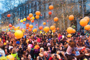 On Sunday, the event called the “Taronjada” will take place. This event is what distinguishes this Carnaval from the rest and truly makes it special to Barcelona. The Taronjada is made up of four parts, the first of which starting at 4:30 pm in Plaça Comercial. The Taronjada consists of a small battle, and essentially a confetti fight complete with balloons. In the initial “battle” in the 14th century Barcelona Carnaval, there were actual oranges thrown! This incredible show is truly a spectacular event, where people gather in the plaza wearing masks and are sprayed by orange confetti (hence taronja, catalan for orange). At at the end of the Taronjada, there is music and a masquerade dance.