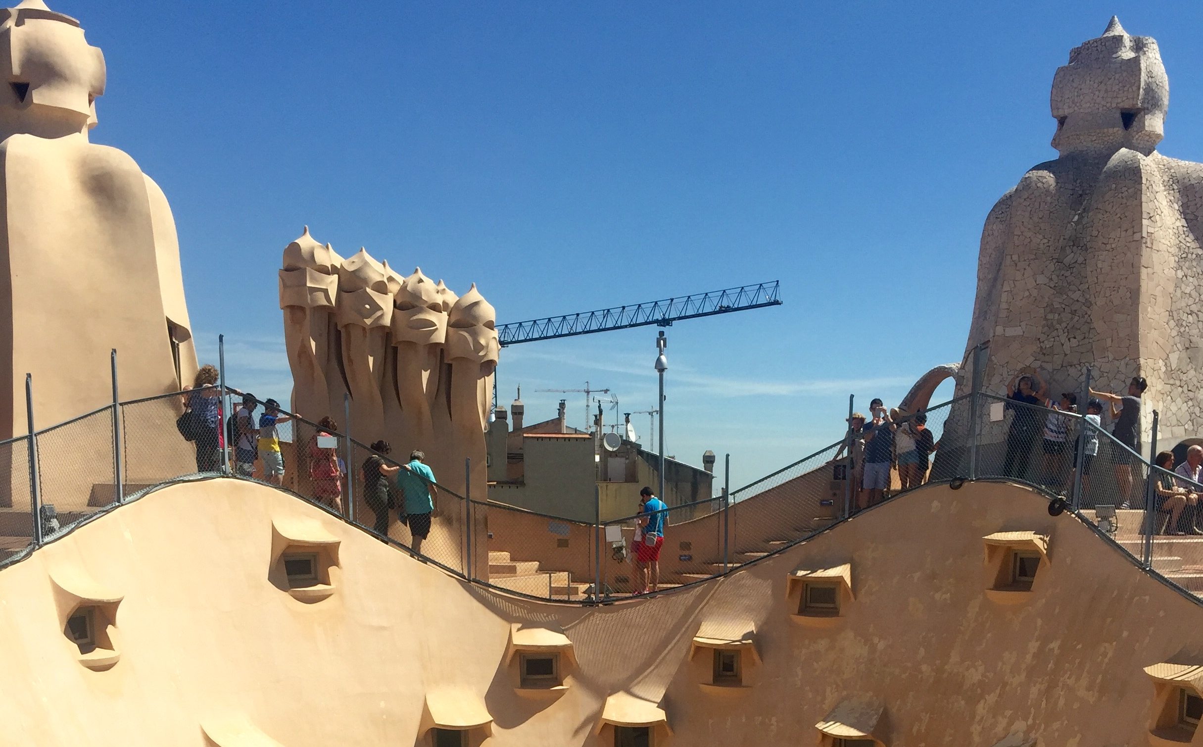 There are four different ways to visit Casa Milà, either by a standard day visit; a premium day visit; a guided visit; or a visit at night. The day visit includes access between 9.00am and 8.00pm (check the reduced opening hours if you’re visiting during the low season) as well as a self-paced audio guide, which is available in Catalan, Spanish, English, French, German, Portuguese, Italian, Russian, Chinese, Japanese and Korean. The premium day visit is essentially the same offering as the day visit but with the added bonus that you can skip the queues, arrive anytime you would like during the opening hours plus you get to take home a hard-copy visual guide of Casa Milà. The guided visit is just as the name suggests – instead of your own audio guide, a professional guide takes you on a tour. And finally, you may like to visit Casa Milà at night to enjoy a light projection show while sipping on a glass of cava and enjoying the surroundings.