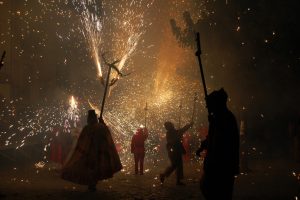 The correfocs aren’t exclusive to Catalonia but they are a very prominent part of traditional Catalan celebrations. A group of people get dressed up in devil costumes and run around with pitchforks that are rigged with fireworks. They are usually followed by a beast-like effigy which spits fire, all of this to the sound of music. It is common to find correfocs displays in big celebrations like the Festes Majors and La Mercè.