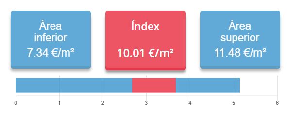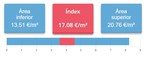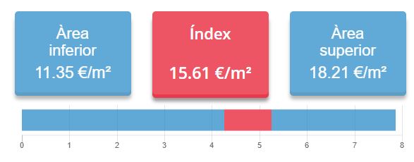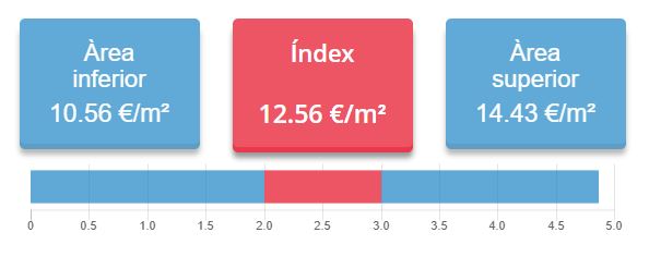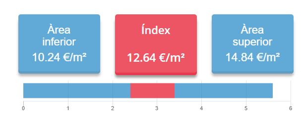 The fixed price indicated by the Generalitat de Catalunya is: 12,64 €/m², with a minimum of 10,24 €/m² and a maximum of 14,84 €/m².