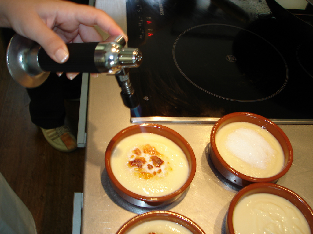 The last thing you have to do is to cover the dessert with sugar and burn the top, caramelizing the sugar.