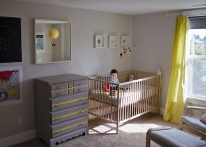 As we mentioned previously, during the first stages of a baby’s growth it’s important that the bedroom is peaceful and relaxing. To achieve this, you can use pastel colors. Some people opt for the traditional choice of light blue for boys and rosy pink for girls, but of course there is no need to stick to the conventional – yellows, greens and mauves will also fit beautifully in a baby’s room. Thin curtains, which allow light to pass through but not so much that it will disturb the baby, are another option. A cozy chair in which you can nurse or give your baby a bottle in a calming environment is also a great way to decorate a room. Soft, smooth lights that won’t interfere in the baby’s sleep also add to the space. A wider cradle that can be turned into a bed will save you money when your child grows. Lastly, an armoire for their clothes, a built-in changing table and chest of drawers for holding belongings and clothes and a rug with lots of space to crawl would all be ideal for a child’s room.