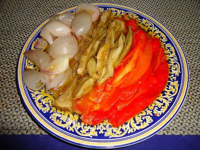 - Before beginning the cooking process, wash the eggplants and the red peppers thoroughly.