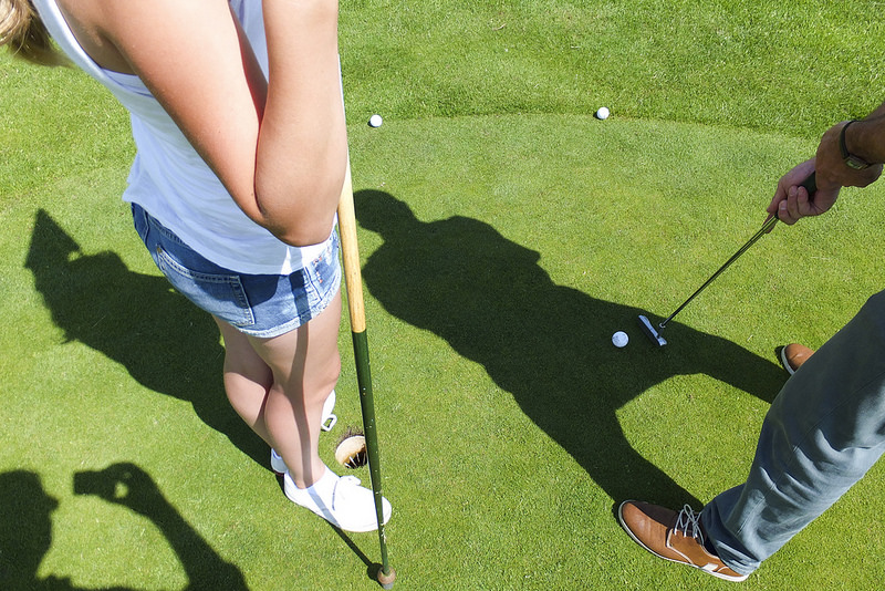 First, a little background on pitch and putt. Instead of taking the family through an entire golf course, which for me usually takes over 4 hours, you can take the family to a course that offers “pitch and putt”. A pitch and putt course is only 9 holes, ranging from 60 yards to 100 yards per hole. This reduces the amount of time it takes to play 9 holes and makes it a lot easier. There is no teeing up and driving the ball, hints why the course is at most 100 yards. Pitching is where you use a sand wedge or pitching wedge to get the ball up onto the green where the hole is. Once the ball is on the green, the player putts the ball into the hole. Depending on the location, and whether you have the time or energy, an 18 hole course may be available. Pitch and putt is a great way to teach young ones the most important part of golf.