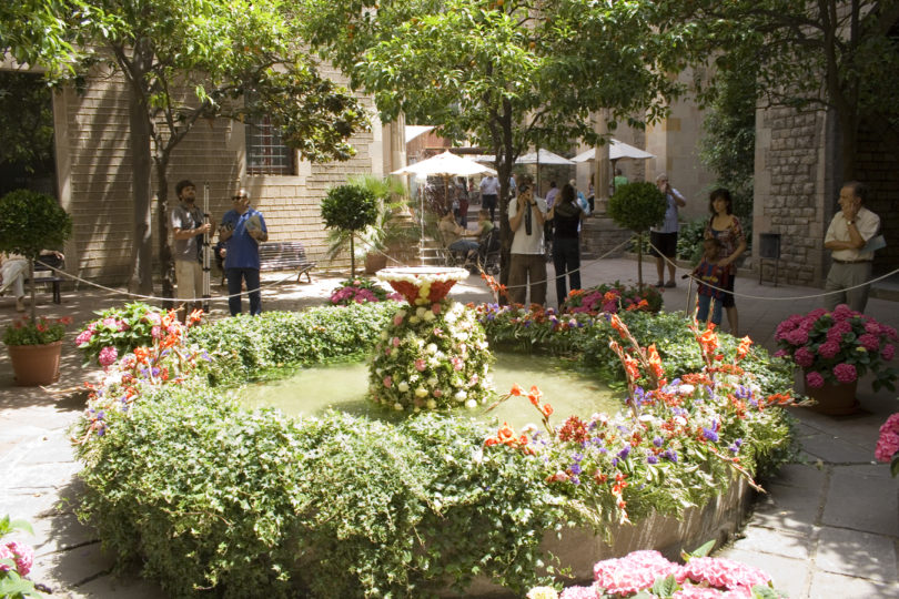 There are more manifestations on this popular day, such as L’ou com balla (or the dancing egg in English), which are scheduled during the feast of Corpus Christi. L’ou com balla has been a tradition – only in Barcelona – since 1440. And it has now become an attractive sight to see. It takes place in the cloister of the Cathedral and its influence has spread to other places in Barcelona and nearby towns. It is an event that consists of making an empty egg “dance” on the water jet of a cloister spring fountain, but you can also find it in some other squares, gardens of institutions or at some private gardens. The water jet the egg dances on, is caught by a reservoir, that is decorated with flowers and cherries. This specific practice has an unknown origin and can be interpreted in different ways. Apparently it was born as a form of entertainment between the bourgeoisie and the upper class, to kill time before the procession passed. But that is just one of the explanations to be considered, other options are: to honour spring and fertility, represented by the jet of water or the egg itself, or another reason why this curious ritual was initially performed, could be the symbol of the chalice used during the Eucharist, which would be the reservoir that surrounds the water jet.