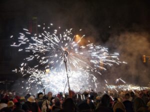 The fiesta mayor of the neighbourhood of Sagrada Familia takes place in the middle of April, coinciding with April 23rd, when one of the most cultural and attractive festivities in the Catalan capital takes place, Sant Jordi. Fiesta mayor usually last about 2 weeks and those weeks are full of cultural, typical Catalan folklore activities. Among these activities we want to highlight la rueda de esbarts, a show with different folk dances, carried out by groups coming from all the communities and regions where Catalan is being spoken. There is also la diada castellera, with a display of different associations of castellers of this typical Catalan activity. And your hosts are the castellers of the Sagrada Familia, of course. The special mass for the fiesta mayor will be celebrated in the Sagrada Familia, and it will end with the Ballet de Déu, a special dance from l’Anoia. During the much anticipated Tarde del Fuego it will be possible to enjoy correfocs (or fire runs) and pyrotechnic shows until night falls, and it will all finish in front of the Sagrada Familia. The first day of fiesta mayor celebrates the despertada (or awakening): a parade featuring grallers and drummers will roam the neighbourhood with their instruments with the intention of waking up its residents and announcing the start of the festival.