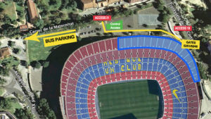 There are 5 stops in total that surround the beloved stadium. You can take the blue line, or L5, and stop at either Badal or Collblanc. You can also take the green line, or L3, and stop at either Les Corts, Maria Cristina, or Palau Reial, and head down the hill following the crowds, noise, and commotion