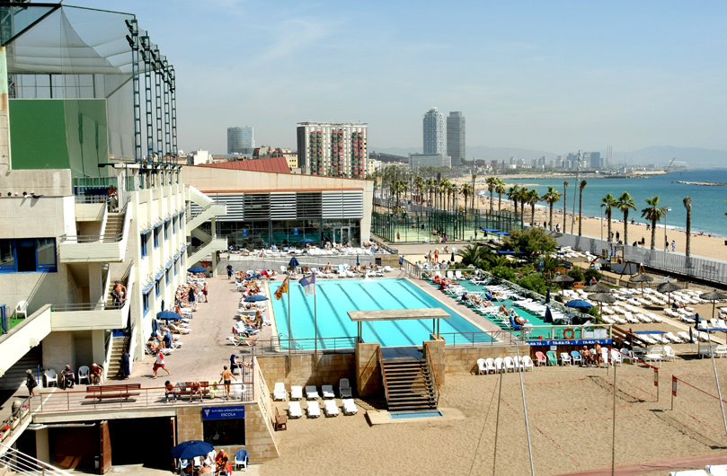 Barcelona Swimming Club (Club Natació Barcelona) is a historic, century-old reference facility in Barcelona, with a privileged location facing the sea and the beach. We have 24.000m2 of facilities to enjoy sport and entertainment 365 days a year. We have swimming pools (50m, saltwater, outdoor summer pool, 25m pool and babies pool), fitness facilities, 140 weekly guided sessions, paddle, squash and racketball, 5 pediments, tennis artificial grass courts, beach courts,