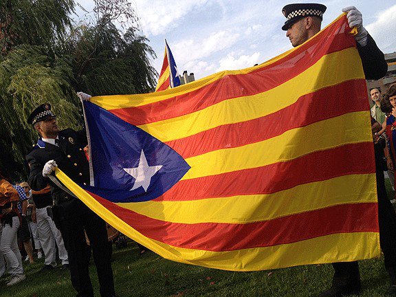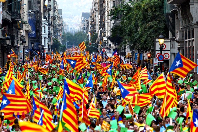 After join Catalan separatist groups with Catalan flags for a 5-kilometer walk down Via Meridiana. They start from Sant Andreu, and end at Parliament de Catalunya. A map of the route can be found here.