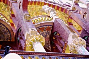 There are a variety of gorgeous pieces of architecture in Barcelona but one of the most stunning of all is, undoubtedly, Palau de la Música Catalana. The building was originally designed in the Catalan modernist style by one of the region’s most famous architects, Lluís Domènech I Montaner, with construction taking three years, starting on 1905 and ending on 1908. The building was constructed on behalf of the Orfeó Català, at that time a leading force in the Catalan cultural movement that came to be known as the Renaixença (Catalan Rebirth).