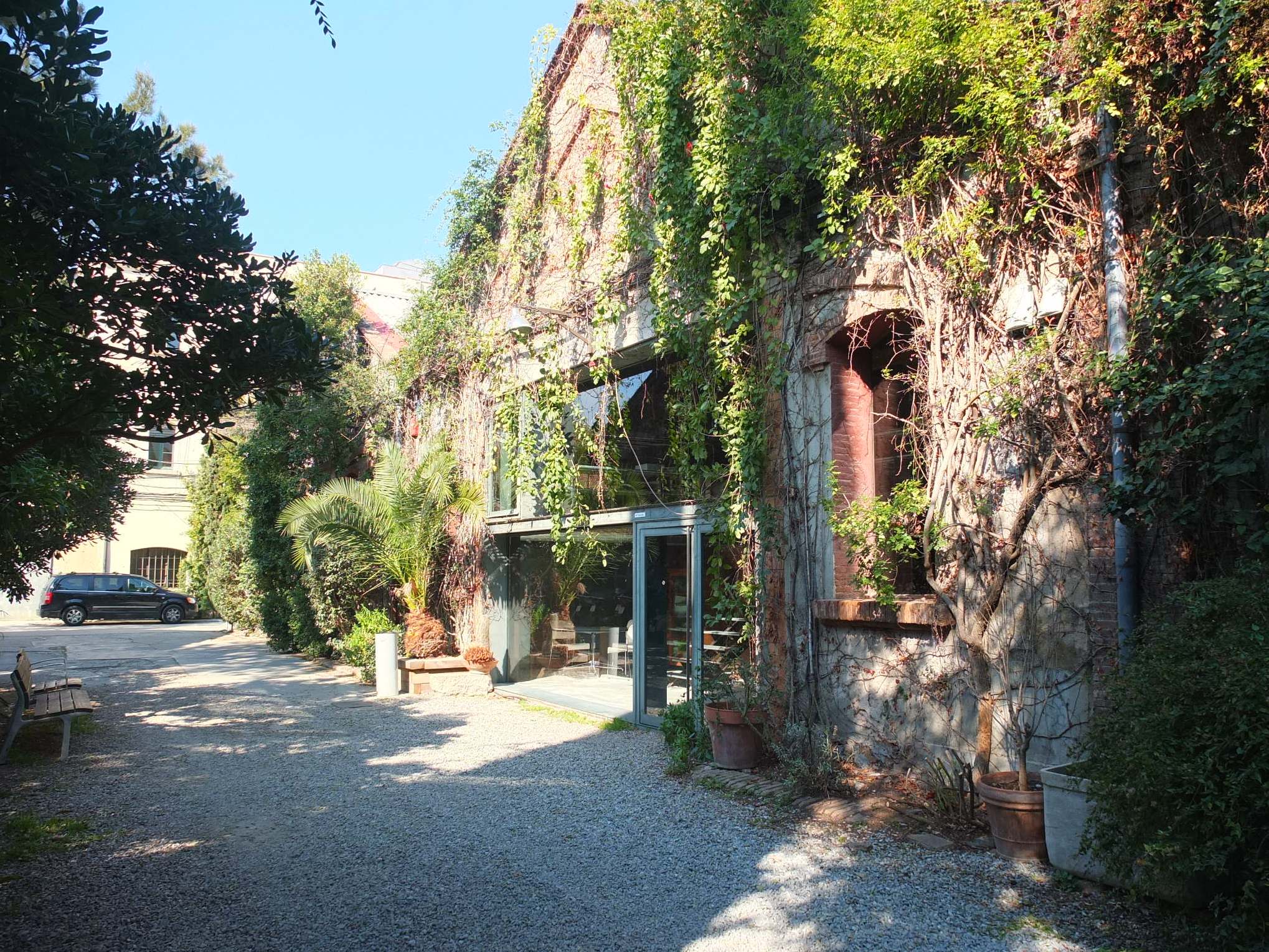renovated_spaces2Palo Alto was an old factory saved from demolition at the end of the 80’s in the Poble Nou district. The factory dates back to 1875 and changed hands until the 1950’s, when it started its decay. It was threatened by demolition during the renovation process for the Olympic Games of 1992, but the artist Javier Mariscal saved it and turned into his studio. He reconverted the space into studios and offices and kept and fixed the exuberant garden. The space was in a very critical situation in 2014, when Mariscal decided to close down his studio and open the space to other companies and projects, like the famous vintage market that takes place one weekend a month. The Palo Alto vintage market is a good opportunity to marvel at the spaces and the gardens, but if you prefer to visit it calmly, you can access Palo Alto to go to the canteen from Monday to Friday, they have a good and accessible menu and you will be free to explore the garden!