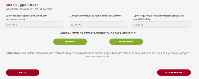 To get an estimate of the property value after renovation, simply follow these five steps in ShBarcelona’s revenue calculator. It takes the costs of renovations into account, and shows you where you can make extra revenue.