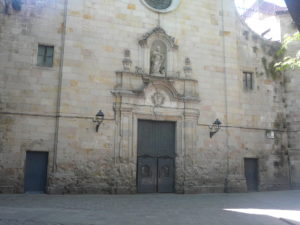 Continue along Bishop Street until you find a small square: Garriga and Bachs. There, turn right at the second street before going on (Sant Sever street) and from there take the first street to the right. You’ll find Sant Felip Neri, a beautiful and peaceful square with a fountain in the middle and some historical buildings. It’s often a bit busy, but I’m sure you’ll feel as if transported to the middle ages. This square is featured in the film The Perfume and it’s also the location of a video of the band Evanescence (My Immortal). Notice the marks in the façade of the church opposite the fountain. There’s a sad story behind these marks. These are marks of the bombings of the city during the Spanish Civil War. One of the bombs killed more than 40 people (mostly kids) that were sheltering in the church. The other buildings you can see in the square are the old shoemaker’s and the coppersmith’s guilds, originally located in other areas of the old town and moved here during a relocation of historical buildings.