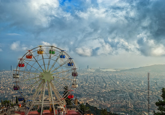 View from Tibidabo BarcelonaLook up to the horizon from virtually anywhere in Barcelona and you’ll probably see the familiar shape of Tibidabo mountain, standing proudly at 512 metres above sea level. Perched on its summit is the Sagrat Cor church, a building that looks like something from Lord of the Rings when viewed from a distance. Climb Tibidabo and you’ll be rewarded with a number of excellent vantage points from which to take selfies. For example, you can take a shot of yourself from the top of the big Ferris wheel at Tibidabo’s amusement park. Or, climb to the church and get a selfie with the sacred heart of Jesus statue in the background. Mostly though, you’ll want to gaze out at the amazing view of Barcelona and the Balearic Sea beyond. This is probably the highest view you can get of the city, so enjoy it!