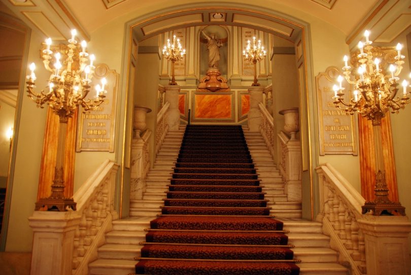 The word that better describes Gran Teatre del Liceu‘s style is, without a doubt, grandiose, with its shiny marble floors, gold-adorned columns and red-carpeted stairs. The main showroom is really a thing of beauty, combining red and golden and a sumptuous ceiling ornament that attracts as much attention as the shows performed on stage.