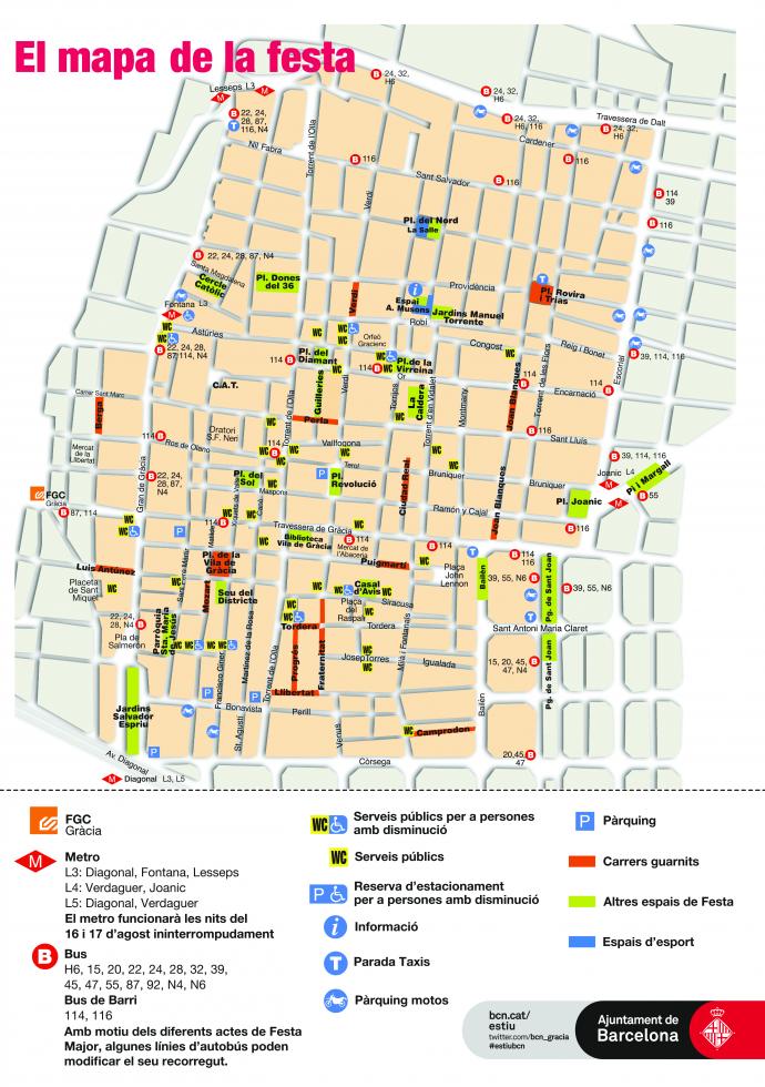 This year the festivities are expected to be more familiar and inclusive, as the organization have scheduled more daytime activities for children and for disabled people looking to offer a safe and peaceful celebration, of which no one is excluded. As every year, the night noise is a major concern of the neighbors who, besides from enjoying the party in their neighborhood, they also want to have some rest, clean streets and no damaged ornamentation. That’s why the number of sound limiters to reduce the perceived noise level has increased to 47 in the various stages and they maintain the private security in the streets. A new activity this year is the promotion of designation of origin Catalan wines with a wines route through the streets of Gràcia between the 16th and the 21th of August, the day on which the “Festa Major” will end up.