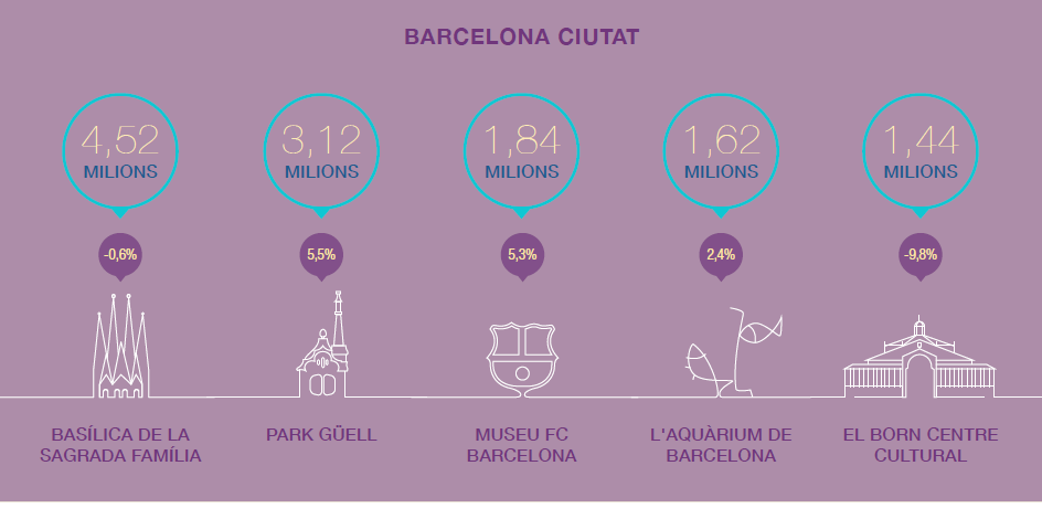 The number of visitors to famous sites in Barcelona in 2017 / infographic via Ayuntamiento de Barcelona
