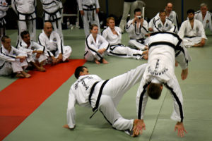 Gear – Students normally wear white uniforms with a belt tied around the waist. For training, you will also wear pads on your hands and feet.