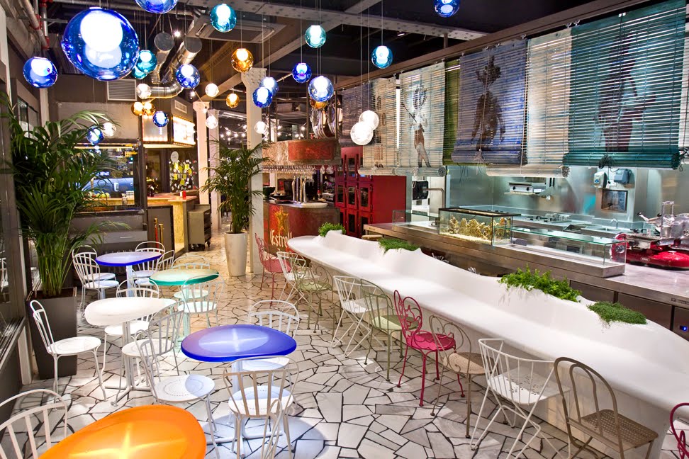 This place situation in the Barcelona map on the Parallel Avenue isn’t chosen randomly, but its decor and concept revolves around cabaret, music hall and performing arts that fill this historic avenue of the city. The Tickets Bar has several bars that create a space to develop a “tapa’s life” (as they call it); on of them is the Presumida bar, reflecting the Mediterranean Barcelona’s food; the Estrella, where the beer with the same name is served to accompany the meal; the cabin of the Marx Brothers, a space for the crooks; Nostromo 180286, where “xuxis” are served in a futuristic atmosphere and where the creativity is at its fullest, you should definitely try the urchin xuxis with avocado and jelly mint; the Garatge with a similar industrial aesthetic to the port of Barcelona where grilled food is served; and finally called the Dolça bar for the sweetest dishes, commonly would be know as desserts, but in this case have its own autonomy.