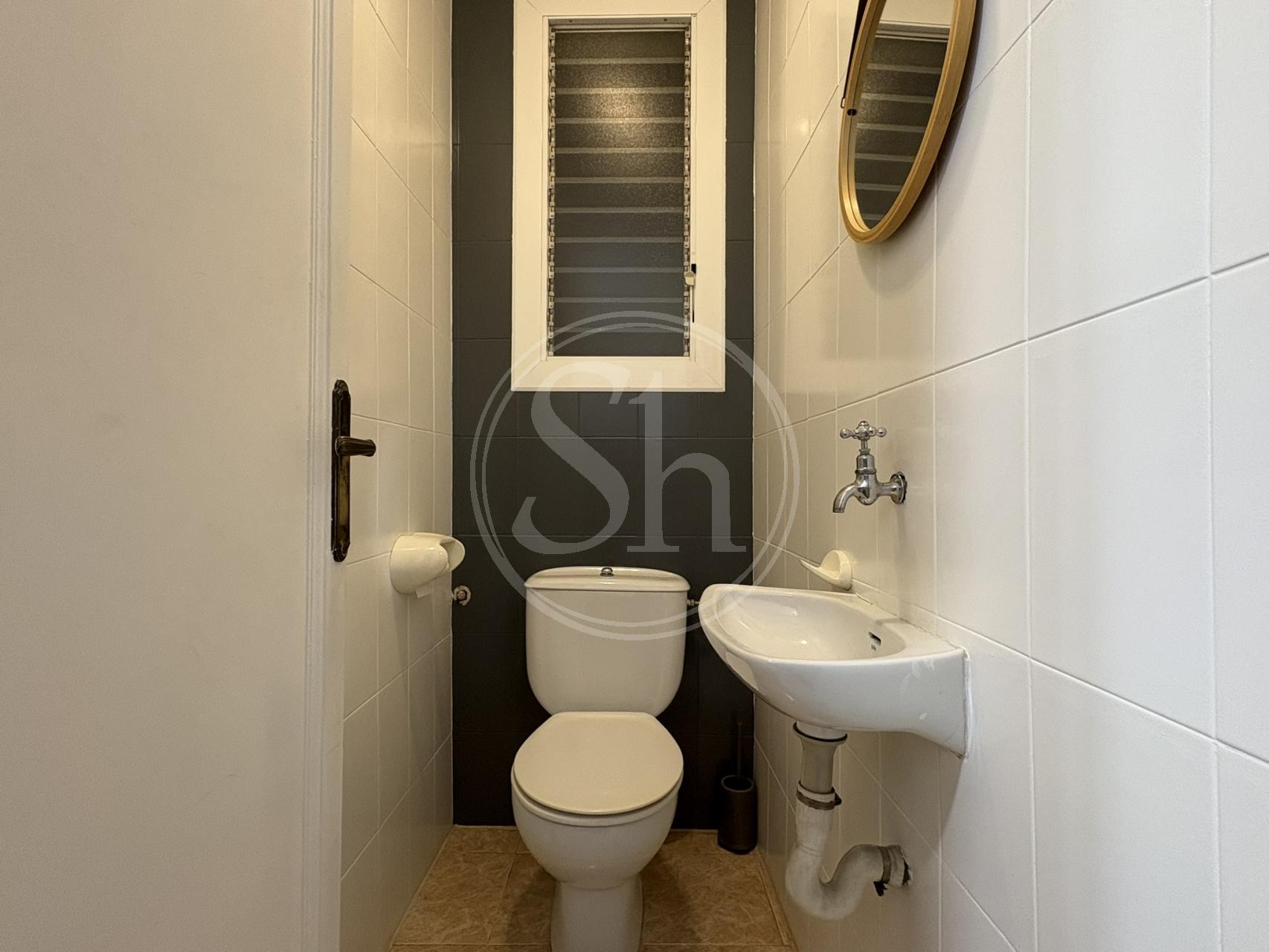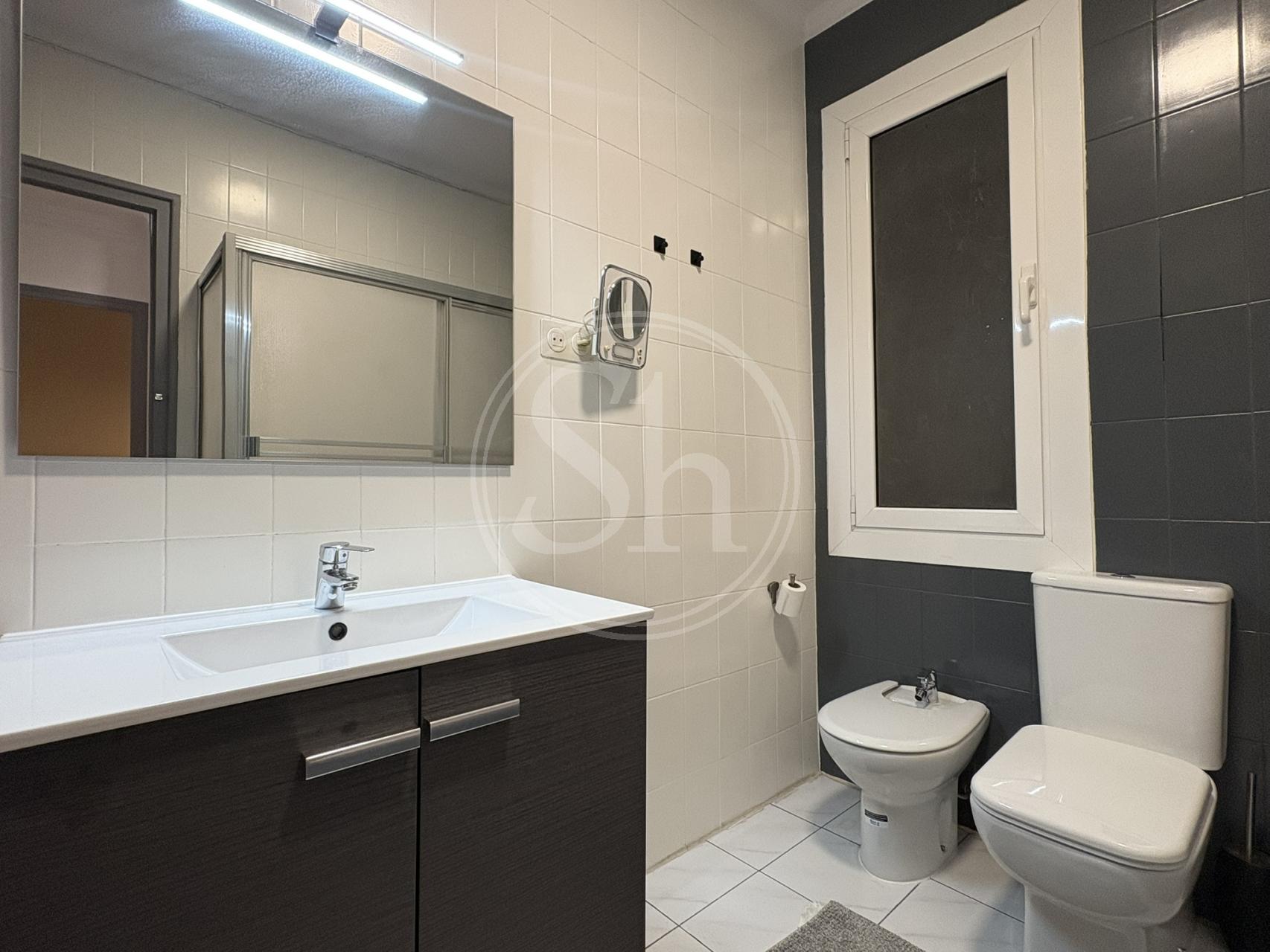 La vivienda cuenta con un baño completo con bañera, además de un aseo de cortesía, facilitando la convivencia. Los suelos son de cerámica, la calefacción se suministra mediante caldera de gas, y el piso se entrega semi-amueblado y semi-equipado, incluyendo electrodomésticos de cortesía. Actualmente se están realizando mejoras interiores orientadas a la conservación y mantenimiento del inmueble.