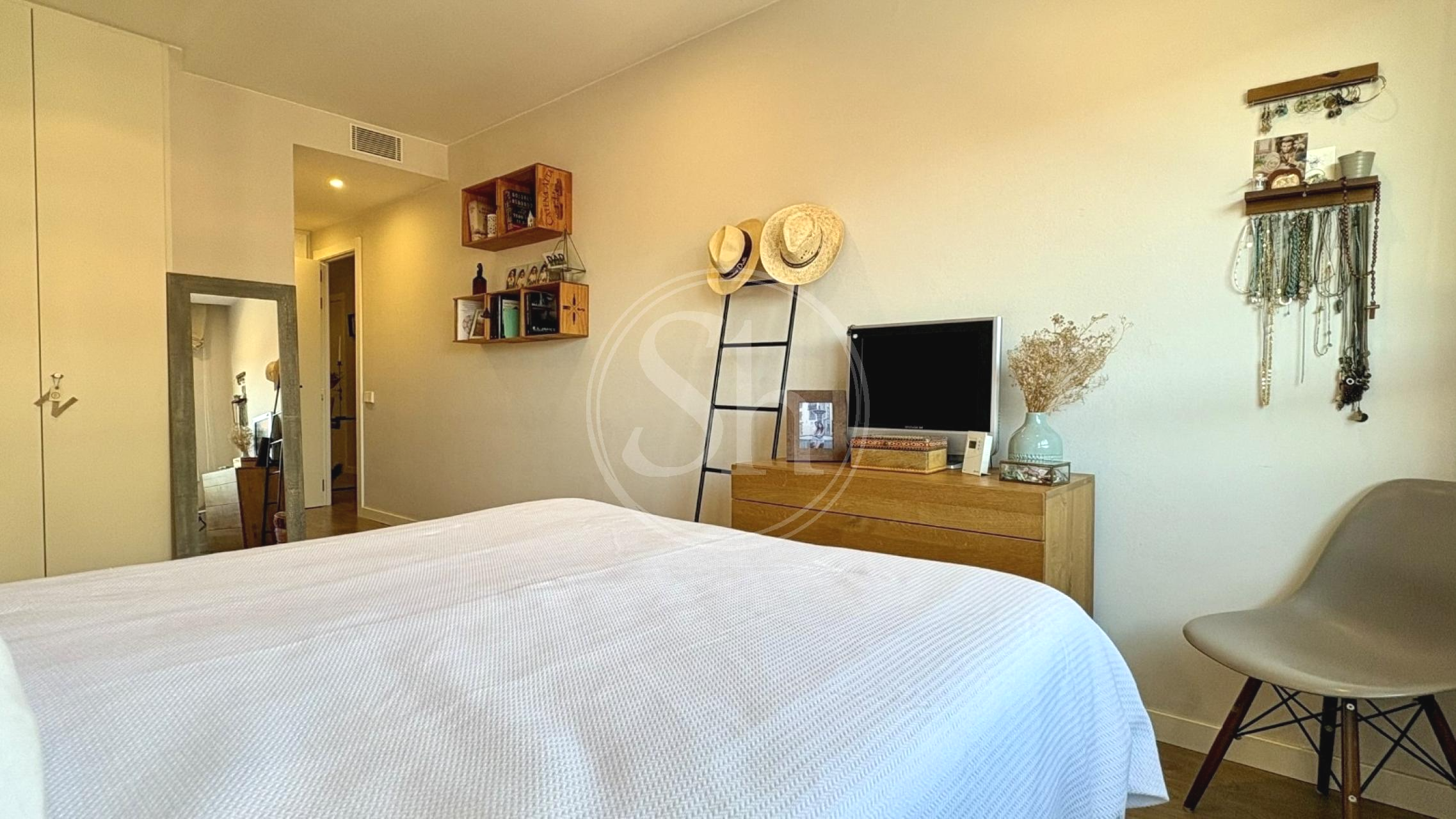El apartamento goza de amplitud y de luz natural. La vivienda está compuesta por tres habitaciones dobles. El inmueble dispone de dos baños modernos, uno de ellos en suite, una cocina independiente con equipamiento de alta gama, y lavadero. El piso dispone de armarios empotrados, suelos de parquet, aire acondicionado, calefacción de gas.