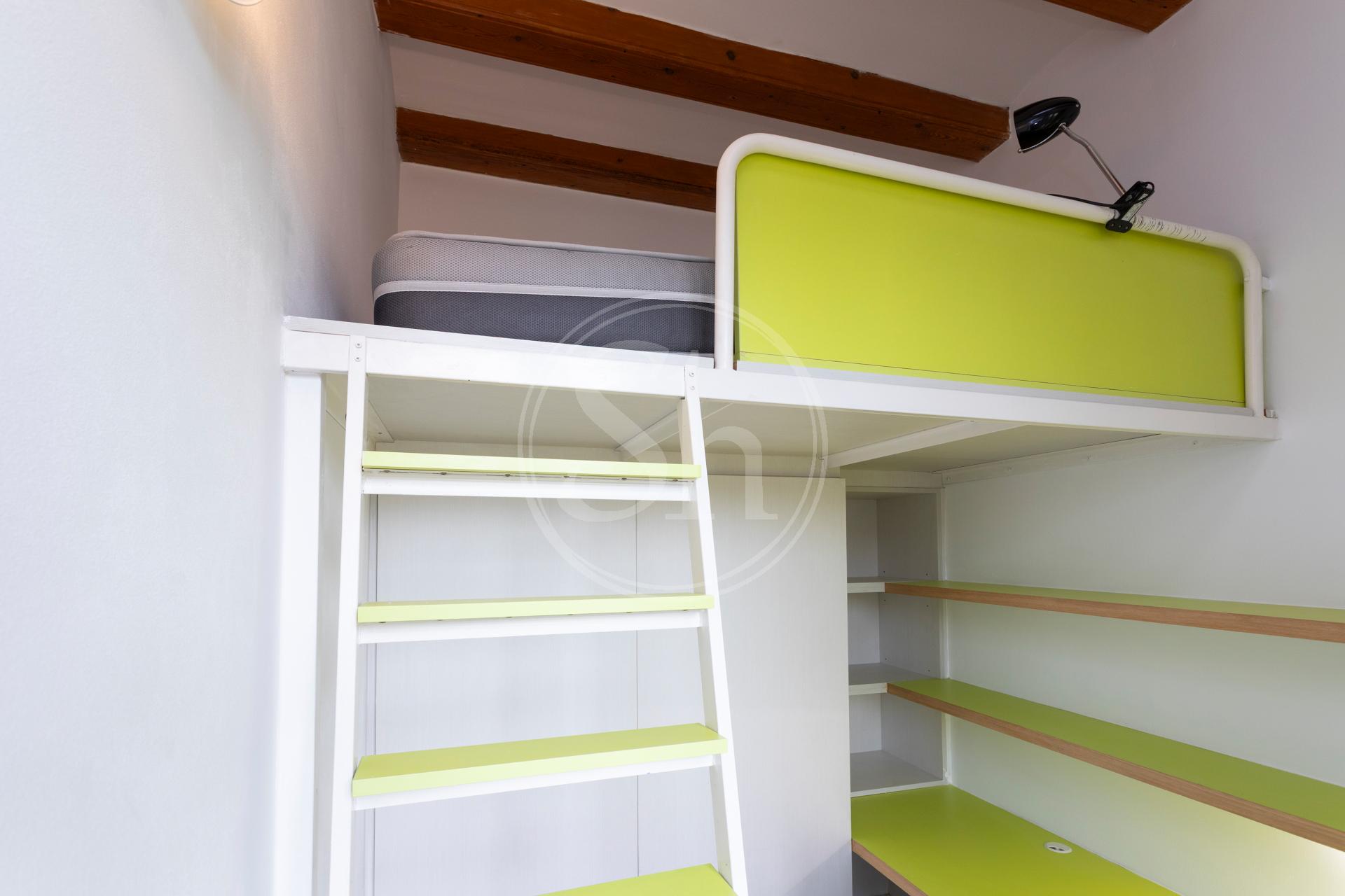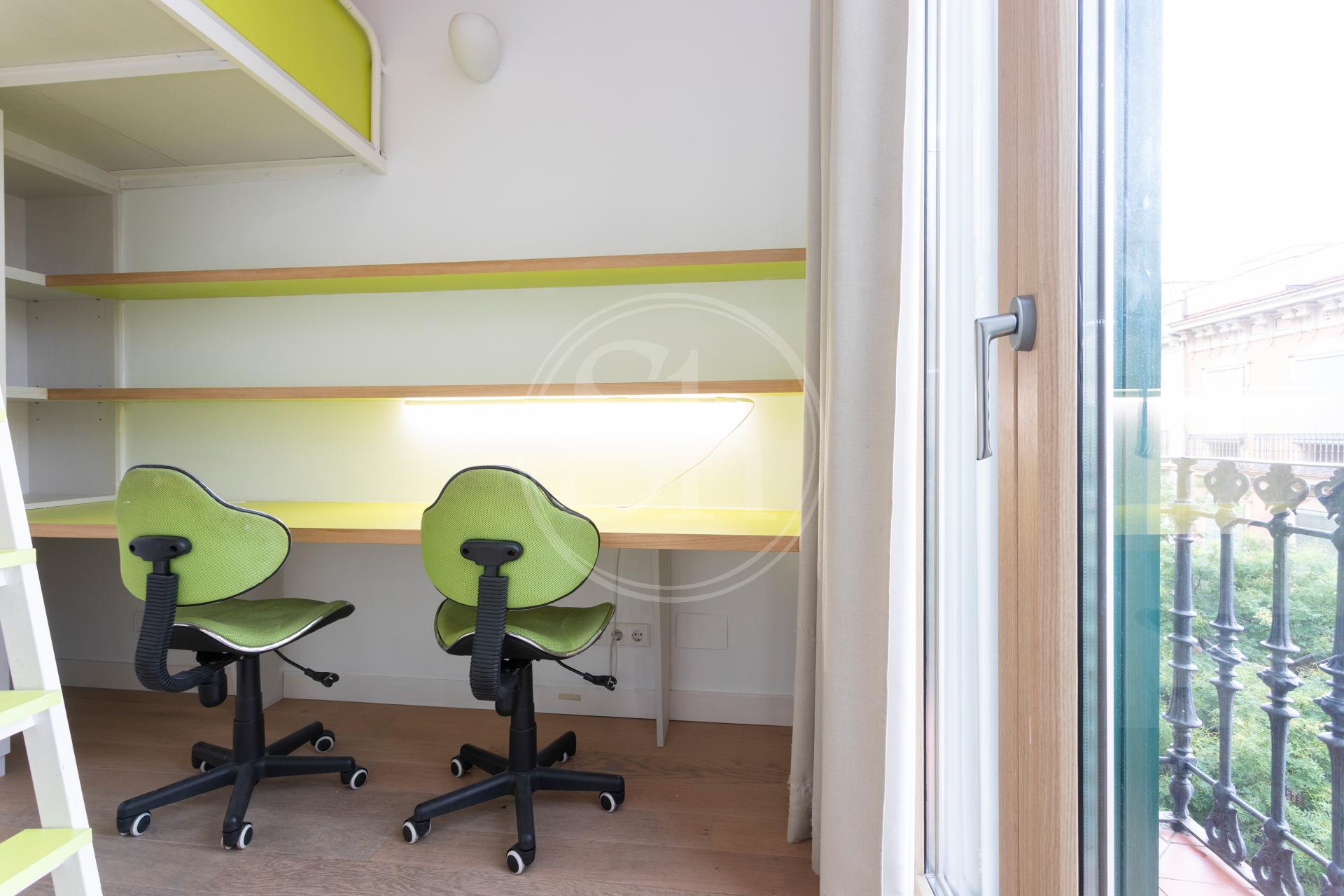 ShBarcelona presents this fully furnished and equipped property in a building with an elevator. It has 94 m² distributed in 3 bedrooms , two of them with a double bed and the other with a single bed, 2 full bathrooms , one with a shower and the other with a bathtub, a fully equipped open-plan kitchen , an office , a gallery and a laundry area, as well as a bright living-dining room with access to a balcony and a furnished interior terrace .