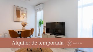 ShBarcelona presenta este inmueble totalmente amueblado y equipado. Dispone de 50 m2 distribuidos en 2 habitaciones dobles, 1 baño completo con ducha, cocina americana completamente equipada y salón-comedor. Asimismo, cuenta con aire acondicionado mediante split, calefacción mediante bomba de calor, conexión a internet con fibra, lavavajillas y lavadora, entre otros servicios.
