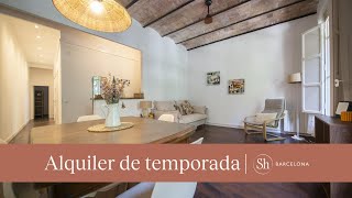 ShBarcelona presenta este magnífico apartamento, totalmente amueblado y equipado, en una finca con ascensor. Dispone de 68 m2 con 2 habitaciones, una de ellas con cama doble y la otra individual, 1 baño completo con ducha, cocina independiente totalmente equipada y un espacioso salón-comedor, con techos de volta catalana y salida a un precioso balcón exterior.